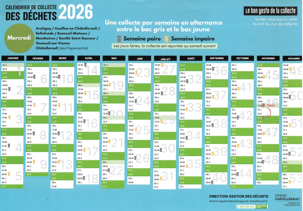 Pour la commune d’Archigny, la collecte a lieu chaque mercredi, en alternance :