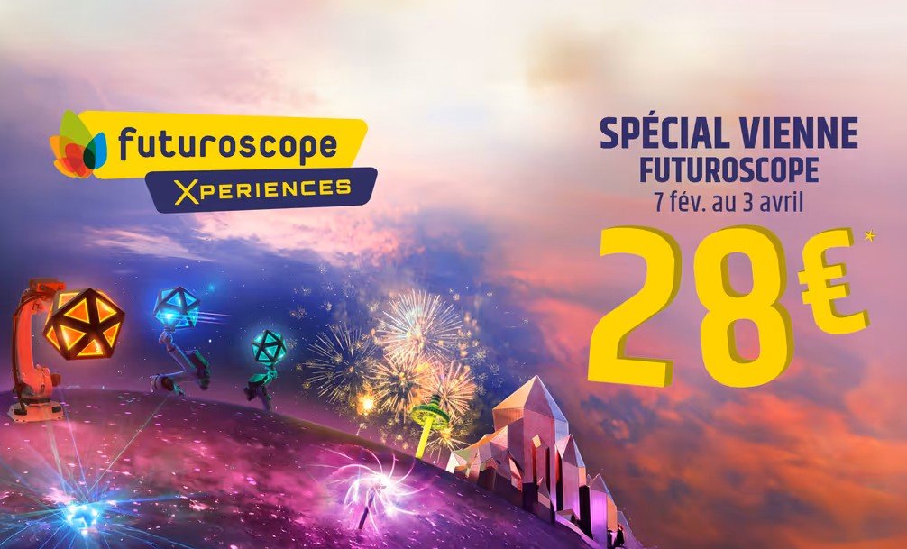 Du 7 février au 3 avril 2026, les habitants de la Vienne peuvent bénéficier d’un billet 1 jour Futuroscope à 28 €, valable pour les adultes et les enfants de 5 à 12 ans inclus.