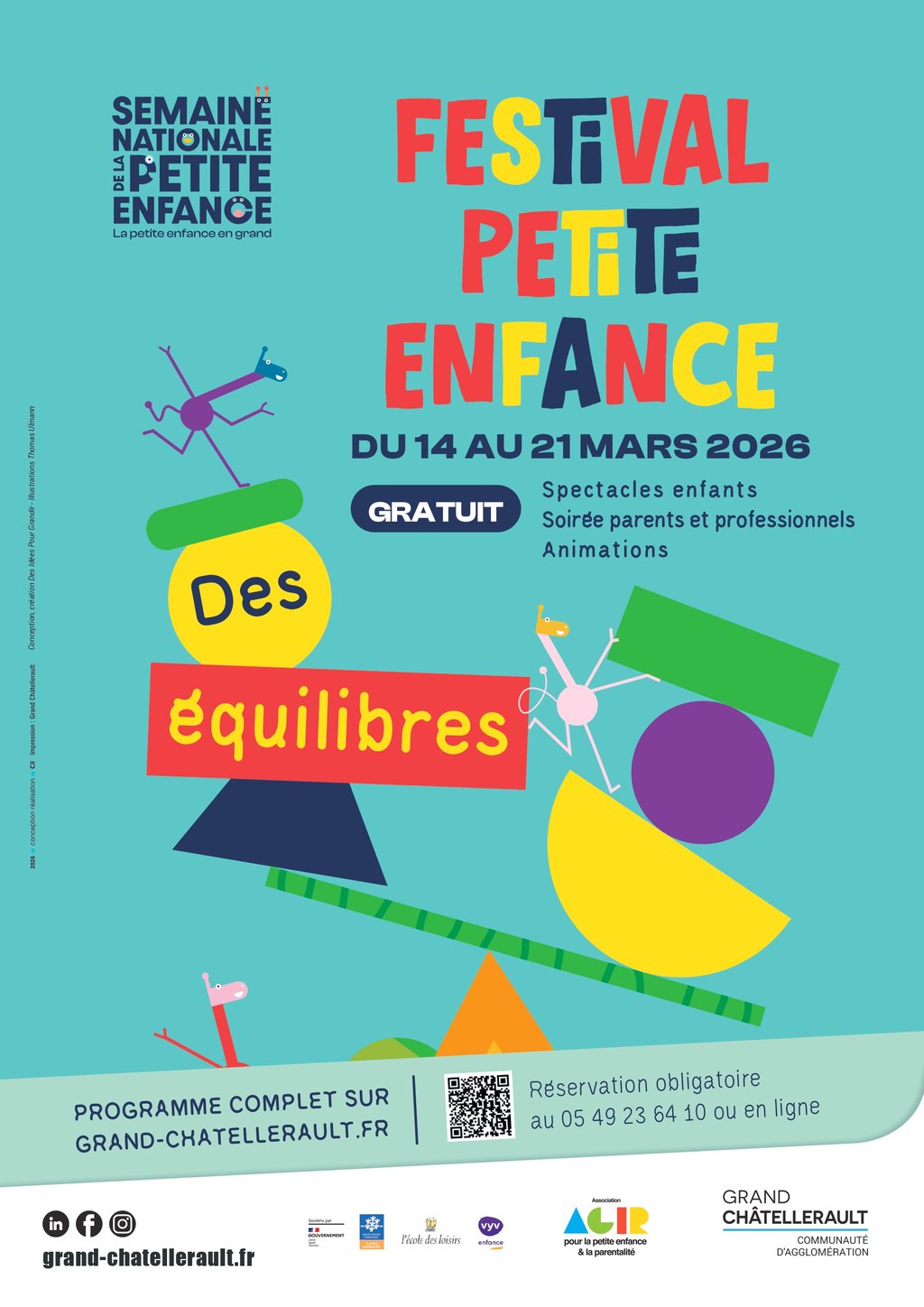 Du 14 au 21 mars 2026, le territoire de Grand ChĂątellerault propose un festival gratuit dĂ©diĂ© Ă la petite enfance : spectacles, ateliers, parcours sensoriels et temps dâĂ©changes pour les parents et les professionnels.