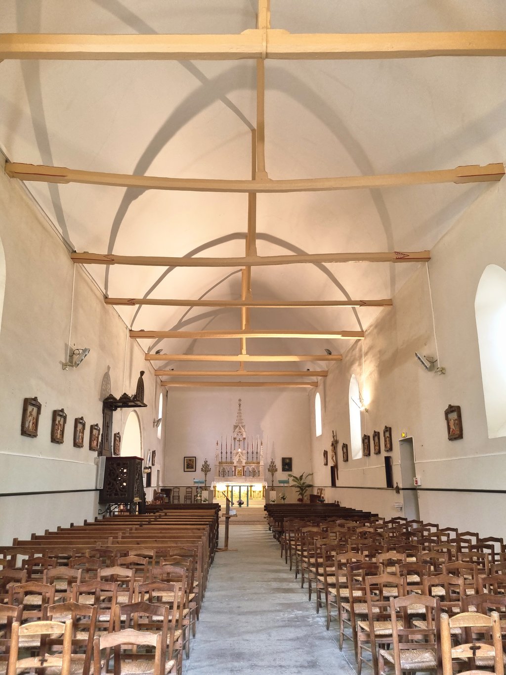 Située au cœur du bourg, l’église Saint-Georges est un remarquable édifice roman datant du XIIe siècle. Elle se caractérise par une nef unique, couverte d’une voûte en bois en berceau, soutenue par une charpente apparente d’une grande beauté. Le chœur se termine par un chevet plat, typique de l’architecture de cette époque.